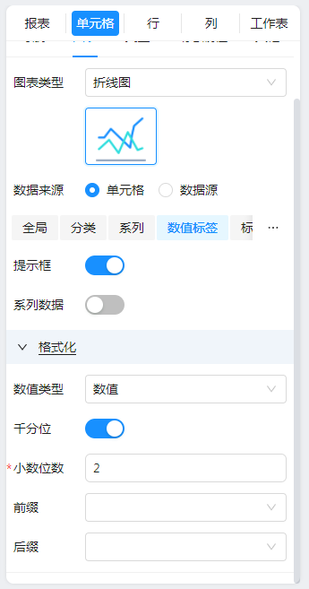 目录 搜索 展开 什么是智能报表产品简介产品概述产品优势报表设计(CS设计器)快速入门快速入门指南术语快速入门示例界面介绍普通报表示例参数查询报表示例图表设计入门示例表样设计与配色技巧报表应用报表入门报表类型报表类型简介普通报表场景报表场景报表简介豆腐块操作要点场景外链联动设置场景豆腐块内嵌组合报表单元格设置单元格类型单元格类型简介普通格图片斜线条形码动态公式富文本单元格显示方式数字格式显示样式报表区域导航大海航行原理数据扩展双向导航导航约束强制导航格公式体系公式体系简介条件属性清单报表多数据源报表分组报表标准分组不扩展分组错行分组分页报表按行分页页内小计分栏报表列表分栏卡片分栏分组分栏主从报表交叉报表参数过滤参数入门参数创建参数控件参数联动SQL嵌套模式数据源传参模式参数校验树参数常用参数设置图表图表入门图表简介图表类型图表数据模板数据单元格数据图表分类图标系列图表样式简介图表标题图表坐标轴时间坐标轴图表坐标轴图表图例图表标签图表工具栏其它交互基础图表条形图堆积条形图柱状图柱状图堆积柱状图饼图饼图圆环图玫瑰图多系列饼图折线图面积图散点图气泡图K线图仪表盘雷达图漏斗图组织架构图高级图表水球图词云图区域地图百度地图下钻地图折柱混搭柱饼混搭折线K线混搭折线气泡混搭折线散点混搭区域地图混合移动端应用移动端简介第一张移动端报表参数内容自适应专题介绍导航行列导航树型导航行列锁定超链接动态呈现数据告警斑马条跑马灯数据转码行/列隐藏行/列剔除工作表隐藏/剔除掩码显示报表样式跟随主题显示脚本和样式自定义脚本使用自定义CSS样式使用自定义JS脚本使用场景全局事件引用控件事件引用动态公式同期比排名累计与第一名差距导出导出导出选项联合报表横向联合纵向联合套打报表数据钻取进度条报表事件按钮事件全局事件微信消息钉钉消息单元格提示报表帮助跨页显示图表系列热点异步执行事件自定义工具栏报表打印概述支持多平台的打印插件概述安装和启动Windows操作系统UOS操作系统麒麟操作系统苹果操作系统常见问题打印没有响应打印和打印预览精确打印页面设置按纸张高度分页缩放打印横向分页客户端个性化设置打印控件简介打印和页面设置精确打印按纸张高度分页缩放打印横向分页客户端个性化设置国产化打印批量打印内容自适应定制开发自定义单元格自定义动态控件性能优化新计算引擎海量报表报表调优问题排查报表设计(B/S设计器)快速入门快速入门指南术语快速入门示例界面介绍普通报表示例参数查询报表示例图表设计入门示例工作台工作台进入工作台管理报表应用报表入门报表类型普通报表单元格设置单元格类型单元格类型简介普通格图片斜线条形码富文本数值格式显示样式报表区域导航大海航行原理数据扩展双向导航强制导航格公式体系公式体系简介动态属性清单报表多数据源报表分组报表标准分组不扩展分组错行分组分页报表按行分页页内小计-暂不支持分栏报表列表分栏卡片分栏分组分栏主从报表交叉报表参数过滤参数入门参数创建参数控件参数联动SQL嵌套模式数据源传参模式参数校验树参数常用参数设置图表图表入门图表简介图表类型图表数据数据源数据单元格数据图表分类图表系列图表样式简介图表全局配置图表标签图表标题图表坐标轴图表图例基础图表-空高级图表-空移动端应用移动端简介第一张移动端报表参数内容自适应专题介绍导航行列导航树型导航行列锁定超链接动态呈现数据告警斑马条跑马灯数据转码行/列隐藏行/列剔除工作表隐藏/剔除导出导出导出选项打印简介打印和打印设置精准打印按纸张高度分页缩放打印横向分页内容自适应套打报表-空单元格提示跨页显示异步执行事件自定义工具栏性能优化新计算引擎海量报表报表调优问题排查常见问题打印相关打印出错相关 暂无相关搜索结果! 图表标签 1 概述2 功能介绍1 概述图表标签用于设置是否在图形中显示数据信息以及数值的显示格式,如下图:2 功能介绍1)提示框设置图表是否显示提示框,开启后移入图表即可显示对应数据项的提示框。2)系列数据设置图表是否显示系列数值。显示:不显示:3)格式化格式化提示框和系列数据中显示的数值。可设置其小数位数、千分位、前缀、后缀等。作者:fancy 创建时间:2025-09-29 14:58最后编辑:fancy 更新时间:2025-09-30 12:01 扫码关注网盛数新公众号,获取更多帮助资料 上一篇:无 下一篇:无 提交评论
